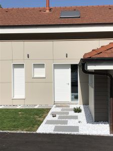 Vous pourrez opter pour une porte d’entrée vitrée ou pleine.